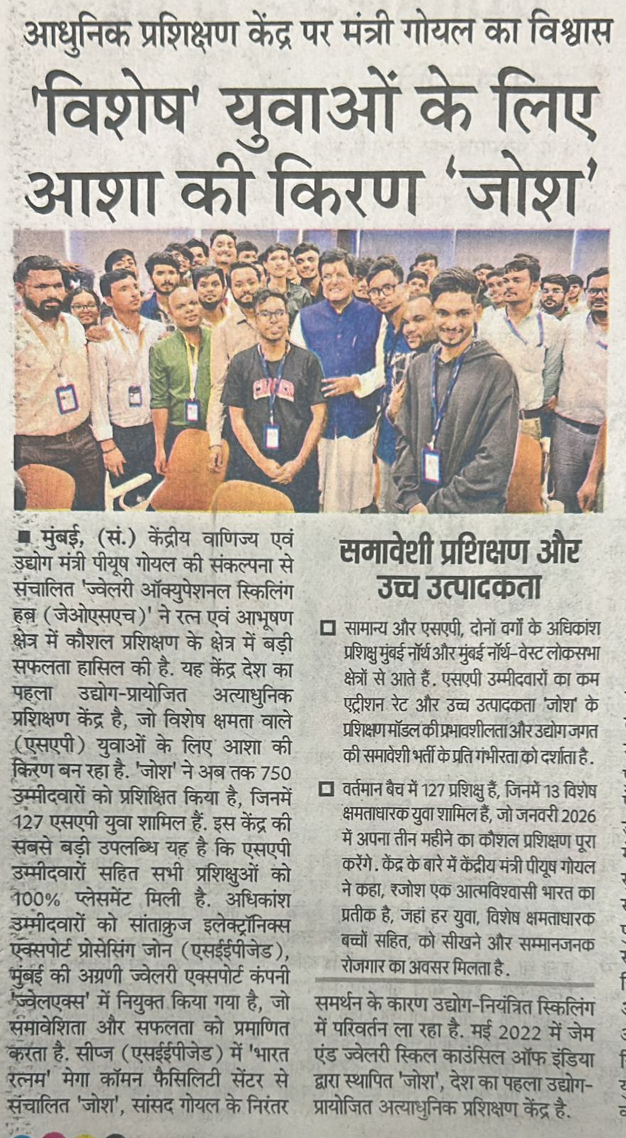 आधुनिक प्रशिक्षण केंद्र पर मंत्री गोयल का विश्वास 'विशेष' युवाओं के लिए आशा की किरण 'जोश'